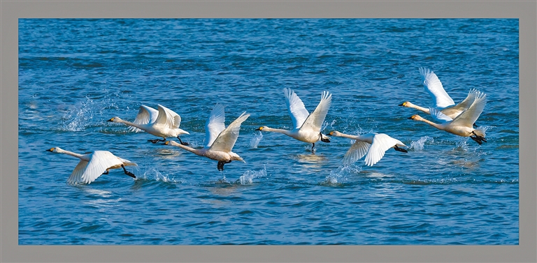 巴彦淖尔市临河区,一群天鹅在多蓝湖觅食嬉戏。文/图 段忆河