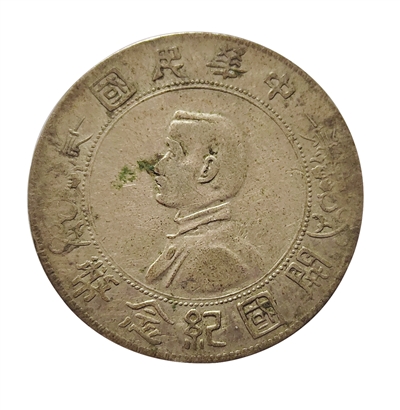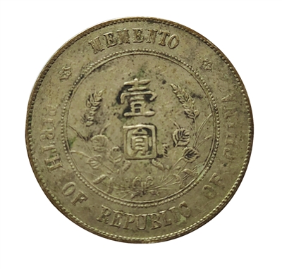 我收藏着一枚“中华民国开国纪念币”,正面中央镌孙中山侧面肖像,外围双圈 (内一线圈,外珠点圈),左右长枝花饰,边缘上下镌有中文隶书“中华民国开国纪念币”。背面中央为中文隶书“壹圆”,边缘英文“中华民国”“壹圆”,左右上方分列六角星。该版纪念币俗称“小头”,直径3.8cm,重27克。