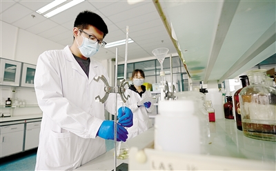 3月24日,内蒙古新创环境科技有限公司工作人员正在实验室进行水质检测。当日,记者在呼和浩特市新城区创新创业服务中心看到,园区内各家企业在做好疫情防控的同时,相继恢复生产。目前,该园区已有101家企业、1780名从业人员复工,复工率超过85%。
