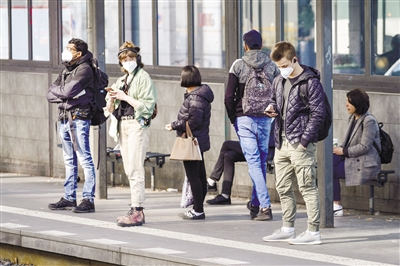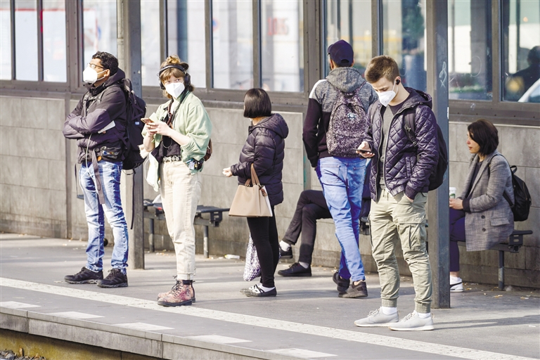 3月24日,在德国首都柏林,戴口罩的人们在站台候车。德国疾控机构罗伯特·科赫研究所24日公布的最新疫情数据显示,德国较前一日新增新冠确诊病例318387例,单日新增确诊病例数首次突破30万例。 新华社发