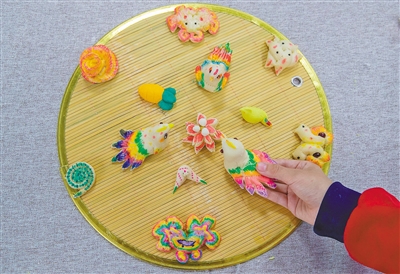 捏好的寒燕上锅蒸熟,被涂上各色食用颜料,瞬间成了民间面塑艺术品。高雁萍说,做好的寒燕被扎到柳枝上挂到高处供人观赏,孩子们最高兴,东家进西家出,品评嬉笑,像过年一样。