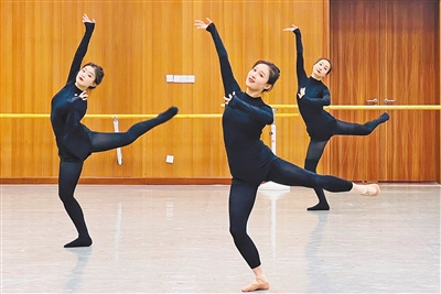 3月28日,内蒙古自治区直属乌兰牧骑队员在进行舞蹈训练。本报记者 王磊 摄