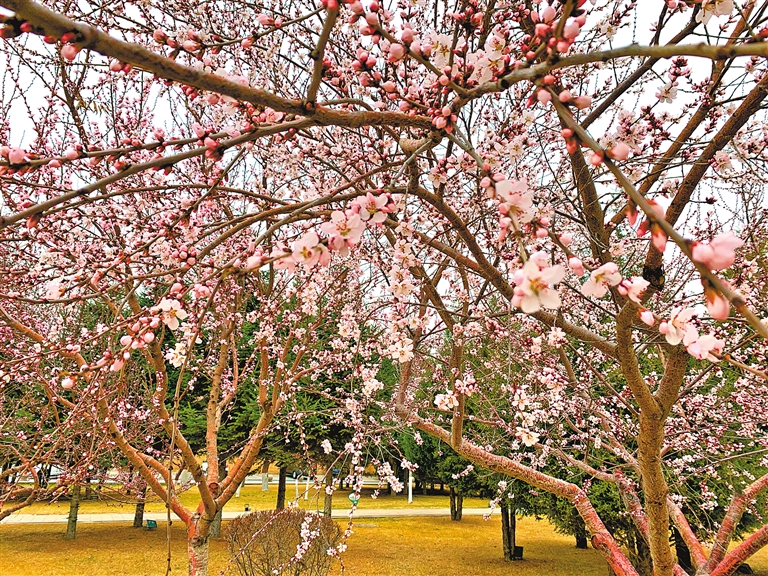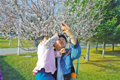 正在盛开的山桃是乌审旗园林绿化中应用最多的观花、果类植物,每逢春天最先绽放,芬菲烂漫,妩媚鲜丽,为人们带来怡情美景。