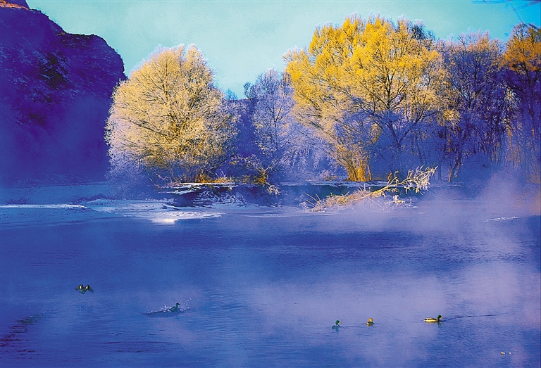 乌兰浩特洮儿河国家湿地公园,绿头鸭在河中觅食。 文/图 苏世君