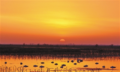 巴彦淖尔市临河区黄河湿地,红日初升,晨雾蒙蒙,水鸟睡意朦胧,静谧祥和。文/图 史雪飞