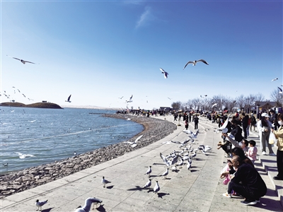 连日来,随着气温回暖,阔别已久的红嘴鸥沿着迁徙路线再度飞抵乌海湖。在乌海湖一号码头,成百上千的红嘴鸥在蓝天白云下逐水嬉戏、展翅翱翔,碧波荡漾的乌海湖因为这群“水上精灵”的光顾显得更加壮美灵秀。