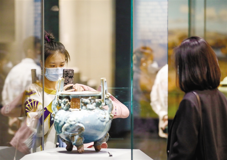 4月4日,观众在内蒙古博物院参观。4月3日,内蒙古博物院恢复对外开放,为进一步加强疫情防控工作,切实保障广大参观者的身体健康和生命安全,内蒙古博物院全面实施提前预约参观措施,每日预约参观人数为2000人。本报记者 王磊 摄