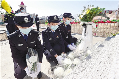 4月4日,满洲里出入境边检站民警向英雄纪念碑敬献花束。连日来,内蒙古出入境边防检查总站组织全体移民管理警察开展线上、线下清明节祭奠英烈活动,通过云端祭英烈、重温入党誓词、向烈士敬献鲜花等方式,缅怀革命先烈,汲取前行力量。