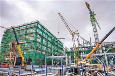 日历翻至3月下旬,鄂尔多斯市年产125万吨煤基新能源材料及配套项目施工现场,塔吊林立,机械轰鸣,车辆穿梭,一派繁忙景象。