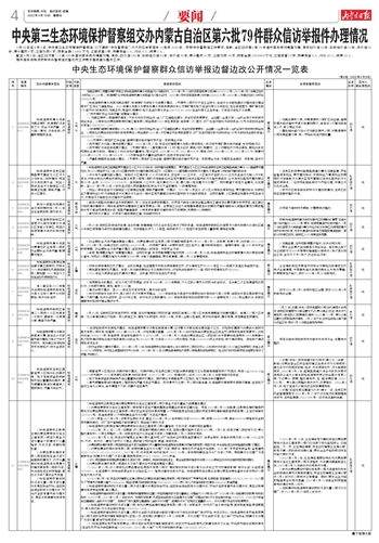 中央第三生态环境保护督察组交办内蒙古自治区第六批79件群众信访举报件办理情况