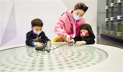近日,小朋友在家长的引导下感受科学魅力。据了解,内蒙古科技馆于4月6日恢复开馆,观众须全程佩戴口罩,保持“一米线”距离,出示青城码绿码和接种疫苗凭证,经工作人员核验无误后,刷身份证从科技馆南门入馆,缺失任何一项必备证明将被劝返。
