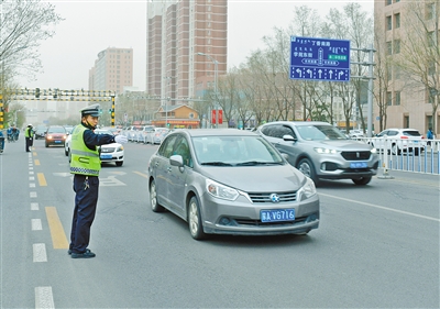 4月11日,呼和浩特市交管支队交警正在道路执勤。当日,呼和浩特市四区高一、高二、初一、初二四个年级学生返校复课,恢复线下教学。呼和浩特市交管部门开展“护校安园”校园周边道路交通安全整治行动,为交通安全提供保障,构建首府文明出行环境。本报记者 怀特乌勒斯 摄