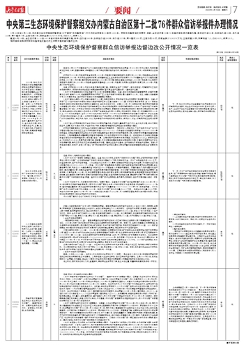 中央第三生态环境保护督察组交办内蒙古自治区第十二批76件群众信访举报件办理情况