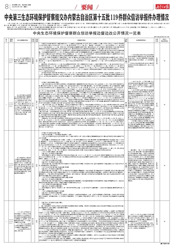 中央第三生态环境保护督察组交办内蒙古自治区第十五批119件群众信访举报件办理情况