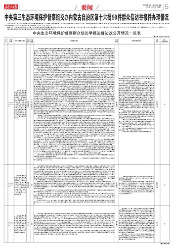 中央第三生态环境保护督察组交办内蒙古自治区 第十六批90件群众信访举报件办理情况