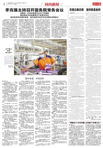 ~~~部署进一步抓好春季农业生产的措施 确保粮食丰收和重要农产品稳定供应 确定能源保供增供举措 提升能源对经济社会发展的保障能力