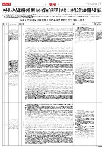 中央第三生态环境保护督察组交办内蒙古自治区第十八批101件群众信访举报件办理情况