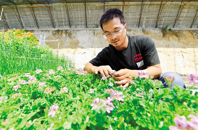 5月2日,内蒙古科丰牧蕊鲜花基地工作人员正在查看鲜花长势。该基地近年来通过调整产业结构,积极发展鲜切花特色高效种植产业,百合、郁金香等花卉实现本地种植,直供本地市场,不仅提高种植户收益,还带动了周边农户种植增收。