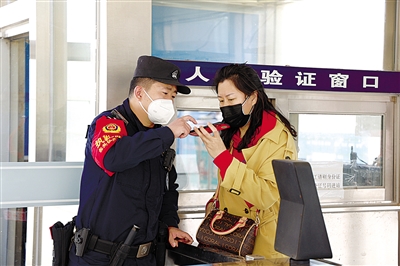 5月1日,包头铁路公安处民警为旅客查找电子版核酸报告。“五一”小长假期间,包头铁路公安处在全面做好疫情防控工作的同时,进一步加强站车治安管控,加大巡逻检查力度,整治突出治安问题,全面排查风险隐患,不断净化站车治安环境,积极为旅客创造平安有序的出行环境。 本报记者 孟和朝鲁 摄