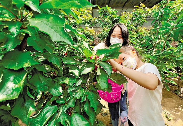 5月3日,市民在采摘园内采摘樱桃。“五一”小长假期间,呼和浩特市新城区野马图村樱桃丰收,吸引不少市民前来采摘。据了解,野马图村目前有401座温室大棚,种植户根据季节进行错峰种植,确保全年都有应季新鲜水果上市供游客采摘,从而增加收入。