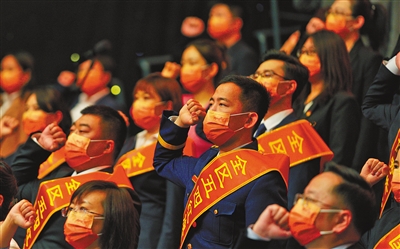 “请党放心,强国有我!”铮铮誓言,字字铿锵;合唱歌曲《领航》《复兴的力量》,唱响主旋律;来自不同领域的3位青年代表,分享了在党的领导下,以青春之名投身中华民族伟大复兴壮丽事业的奋斗故事……活动精彩纷呈,气氛热烈,感染着现场的每一个人。