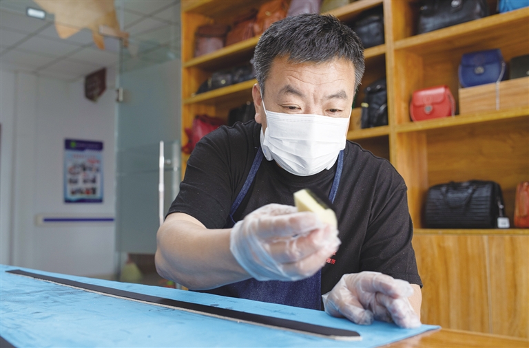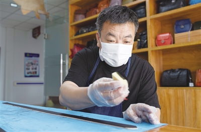 5月7日,在内蒙古残疾人就业创业示范园皮艺工坊,残疾人正在制作手工艺品。近年来,自治区残联多措并举助力残疾人实现就业创业。“十三五”期间,全区城镇和农村牧区残疾人稳定就业人数分别达到1.5万和12.8万。 本报记者 怀特乌勒斯 摄