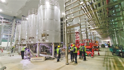 目前,伊利现代智慧健康谷液态奶工厂灌装生产线已进入设备安装调试收尾阶段,投产运行进入“倒计时”。