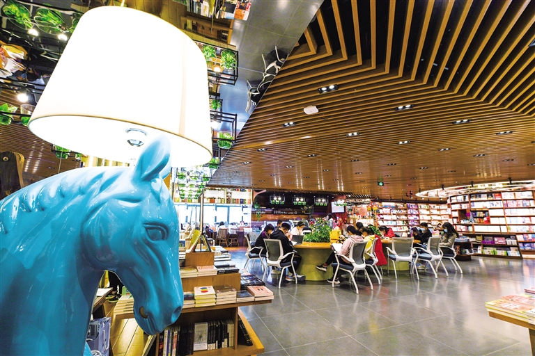 5月10日,市民下班后在呼和浩特市新华书店腾飞路书店阅读图书。目前,呼和浩特市7个公共图书馆及鸿雁书屋正常开放,全市规模以上的19家实体书店自4月27日起将营业时间调整,普遍营业延时1小时以上。本报记者 王晓博 摄