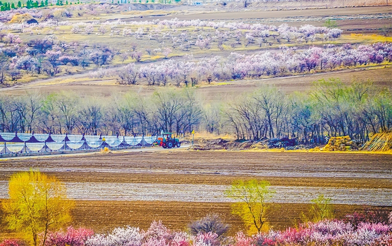 阿鲁科尔沁旗天山镇,杏花灿若云霞,柳丝如烟,春光明媚。 文/图 杨伟东 |