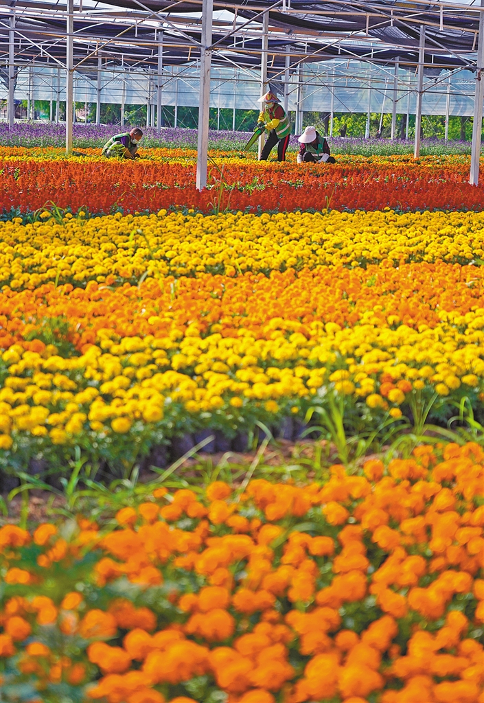 江西省南昌市湾里管理局罗亭镇政通园艺草花生产基地,花农给鲜花除草。 新华社记者 万象 摄 |