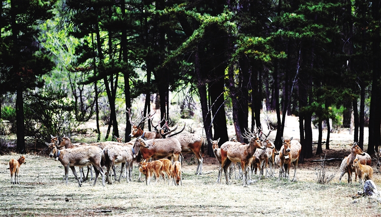 珍稀物种麋鹿在大青山繁衍
