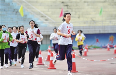 5月12日,学生正在参加中考体质800米跑的测试。当日是呼和浩特市区中考学生体质测试媒体开放日,呼和浩特市3所学校的850名初三学生进行了体质测试。目前,全区各盟市中考体质测试工作正在陆续开展。