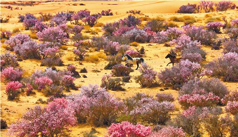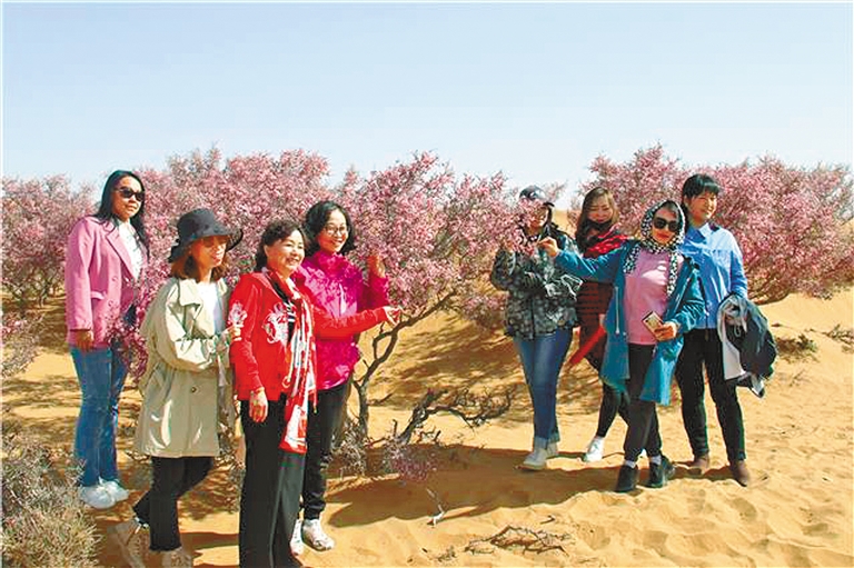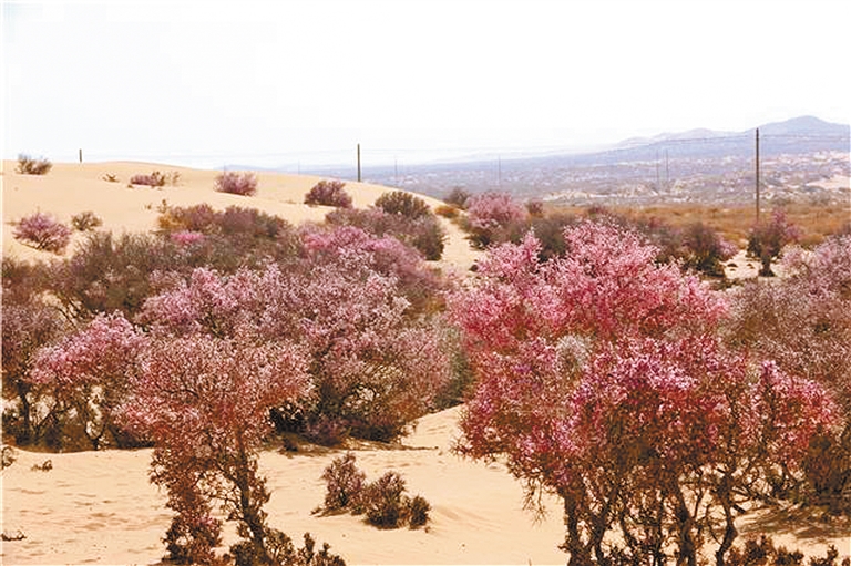近期,孪井滩生态移民示范区8万亩蒙古扁桃花竞相绽放,如霞似锦、蔚为壮观,令腾格里沙漠充满了勃勃生机,吸引了众多游客前来踏青赏花。