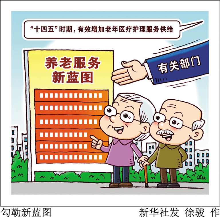 加快发展老年医疗护理服务,鼓励有条件的医疗机构积极为老年人特别是失能老年人提供居家护理、日间护理服务……迈向“十四五”改革深水区,有关部门勾勒养老服务新蓝图。新华社发 徐骏 作