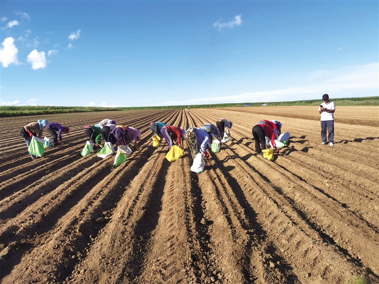 在兴安盟扎赉特旗新林镇营林村,村民王成全家老小一齐上手栽植苍术,忙得热火朝天。有拎着水管浇地的,有挥着锄头备垄的,有弯着腰栽种的,他们一起期待着这片苍术可以染绿整个小院。