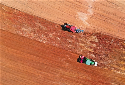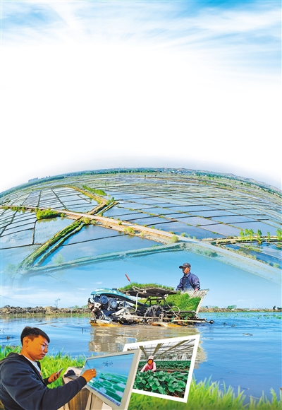 播撒希望的种子,奋斗在田间的人们与和风、暖阳、绿意共同勾勒出美丽画卷。