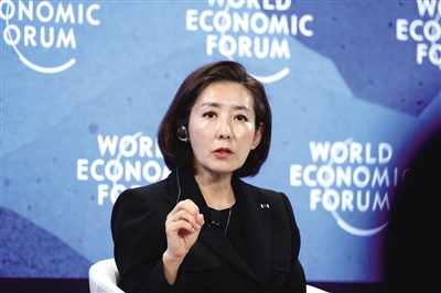 5月26日,在瑞士达沃斯,韩国总统特使罗卿瑗出席世界经济论坛2022年年会一个分论坛。当天,世界经济论坛年会在瑞士小镇达沃斯落幕,本次年会聚焦了地缘政治风险、疫情大流行、气候变化、全球经济风险四大挑战。