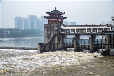 5月29日,浙江省金华市金华江河盘桥枢纽,正在紧急放水泄洪。5月27日开始,浙江省金华市各地陆续出现强降雨天气过程,境内的衢江、金华江、兰江等河流水位快速上涨。当地果断采取紧急放水泄洪措施,确保沿岸人民群众生命财产安全。 新华社发