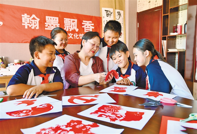 近日,在包头市昆都仑区友谊街道社区少工委活动室内,小朋友们正在学习剪纸。据悉,包头团市委将在条件具备的街道(乡镇)、社区、农村牧区、青少年宫等校外场所建立177处少工委或少先队活动组织,推动社会各界关心少年儿童健康成长。本报记者 孟和朝鲁 摄