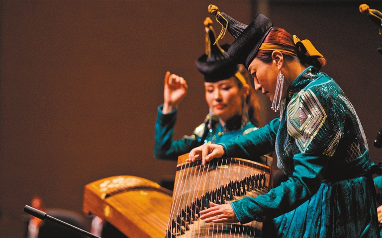 5月28日,内蒙古艺术剧院民族乐团的演奏员为观众倾情演奏。当日,国家艺术基金传播交流资助推广项目——民族管弦乐巡演《丝路草原》在呼和浩特市内蒙古艺术剧院音乐厅上演。