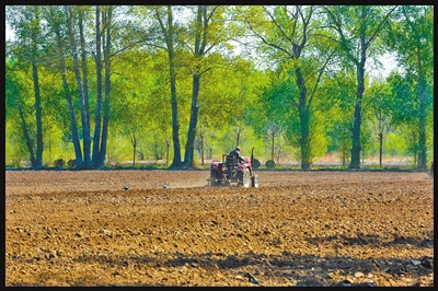 乌兰浩特市义勒力特镇,农民驾驶拖拉机耙地。 文/图 秦魁