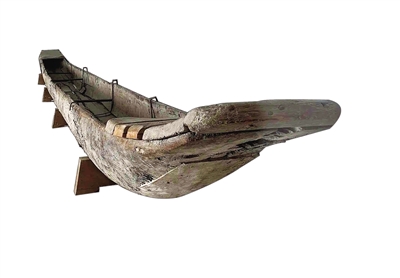 在扬州博物馆二楼大厅,透明的恒温恒湿展柜里陈列着一艘唐代竞渡船,整船用一棵巨大的楠树树干当中刳空而成,树梢为船头,树根为船尾,全长13.65米,宽0.75米,内深0.56米,舷和底厚各0.06米。船头右边有一拴绳的木扣,船尾有2个方形的穿孔。船两头微翘,以檀香胶合并钉补木板。由此可见,唐代扬州之富庶繁华。这艘船1960年3月出土于扬州市邗江区施桥乡夹江内。船身虽因年代久远有裂缝,但仍不失当年风貌。