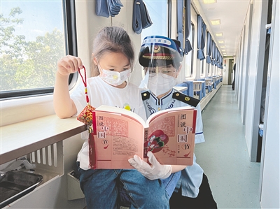 6月3日,正值端午佳节,在深圳东至包头Z182次列车上,乘务员正在为小朋友讲解端午节的风俗。端午假期,该趟列车的工作人员为乘客们准备了香甜的粽子以及五彩手绳等小礼物,让大家在旅途中也能感受到传统文化和中国节日的浓厚氛围。 本报记者 高慧 摄