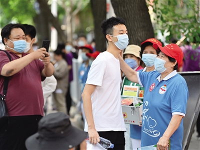 6月7日,在天津市耀华中学外,考生准备进入考场。当日,2022年全国高考拉开帷幕。新华社记者 李然 摄