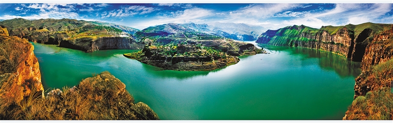 在白云间激荡、盘旋、上升,直至成为流动的绿色,或许,这就是黄河流过高原的样子。白云左绕,大河右洄。恒古未变的山川风物,也还在我们的故土上此起彼伏,风起云涌。