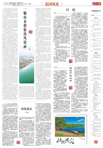 苍烟落照间,长天阔阔,大河汤汤,有了一种阅尽千古、百感交集的沉稳,漩涡拥塞着向下游涌去。宽阔的河面上,舟楫罗帆,桅棹相接。锦霞拢翠,娘娘滩、太子滩在河心形成两个孤岛,落日彤圆,万里锦绣,岛上层林尽染,鸡鸣狗吠,炊烟袅袅。极目大河,两岸碧树凝烟,堤岸迤逦,山川叠秀,草木弥茂,河远浮天。对岸的长城烽堞罗列,长墙竖屏,一派威严。