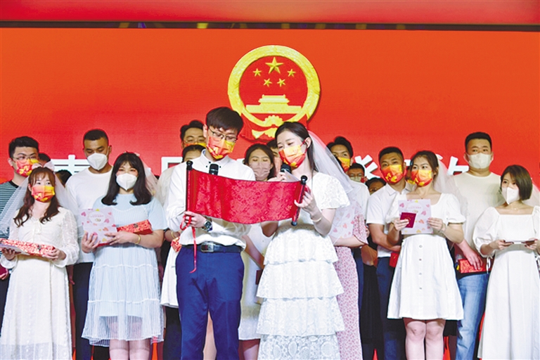 为了大力推进移风易俗,抵制奢靡之风、摒弃婚姻陋习,倡导喜事新办、喜宴简办,活动现场,青山区婚俗改革领导小组发出“婚俗新风文明餐饮示范店”“最美新娘”评选活动公告,鼓励广大市民做文明婚俗新风的倡导者、传播者和践行者。