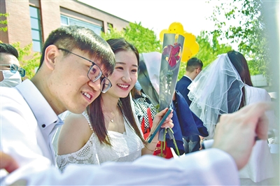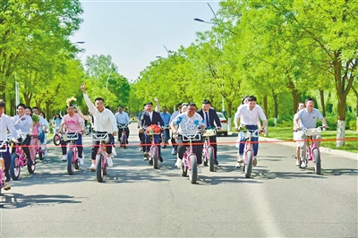 几天前,一场简约又不失浪漫、清新别致且意义非凡的集体婚礼在包头市奥林匹克公园举行。20对喜结连理的新人骑着双人自行车伴着蓝天、绿树、碧水环行,然后他们在“节俭办婚礼、文明新婚俗倡议书”墙上签名。这是包头市青山区连续举办的第四届集体婚礼,也是当天青山区婚姻登记处举行的婚俗改革社会化主题活动之一。