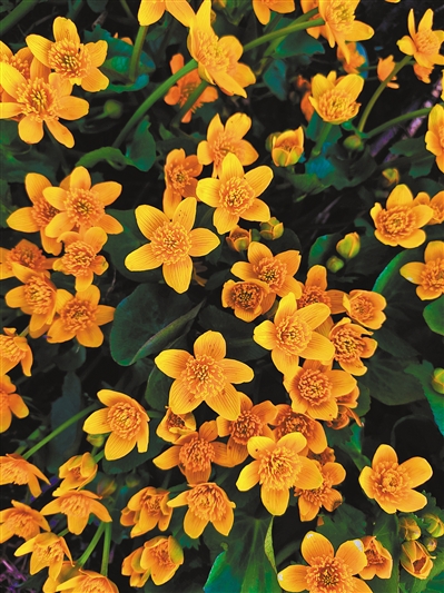 牙克石市博克图镇野外水塘边,驴蹄草热烈绽放,喜迎盛夏。