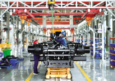 在上汽红岩鄂尔多斯基地天隆工厂的装配生产线上,作业人员有条不紊地给公司新推出的新能源重卡“杰狮H6”装配电堆系统。就在不久前,“杰狮H6”成功通过欧盟WVTA的认证检测,中国新能源重卡拿到了走向世界的通行证。